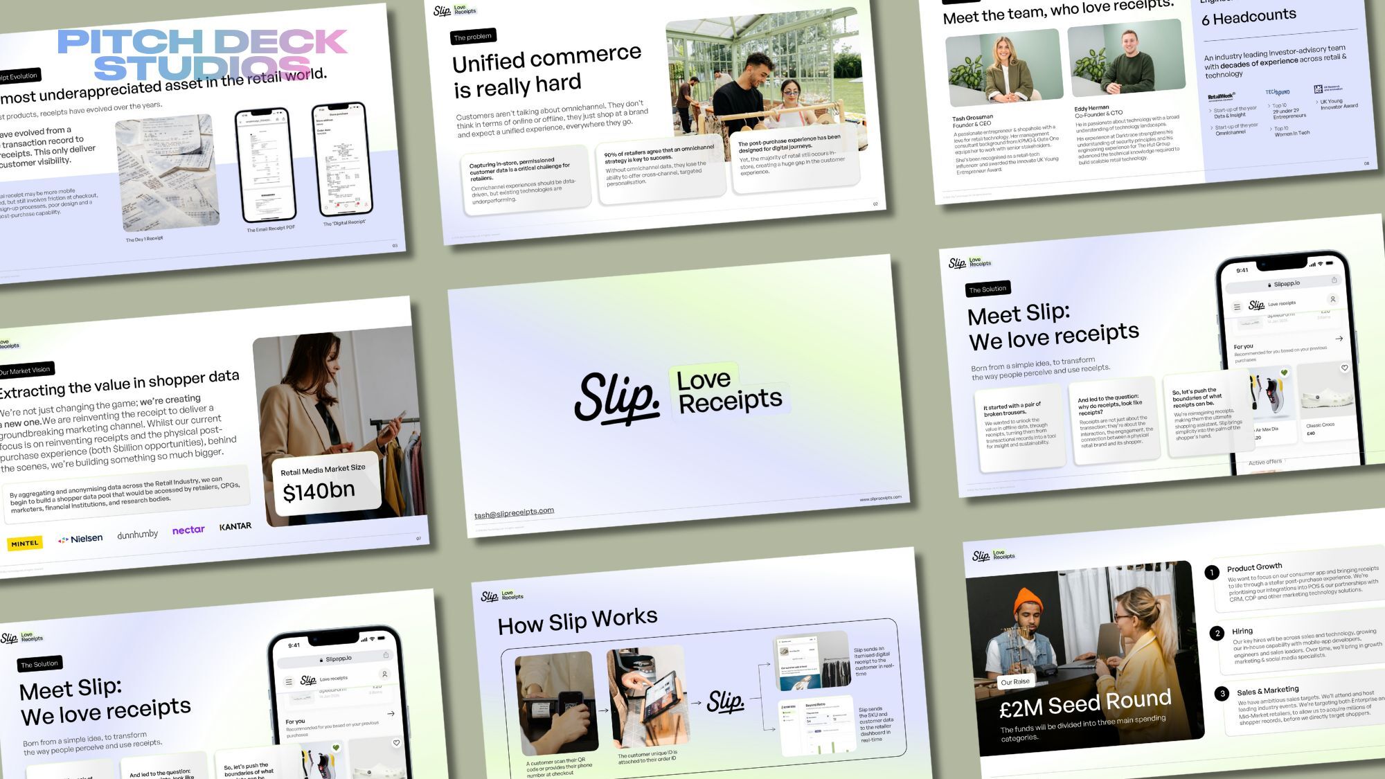 This template captures the story of Slip, a London-based startup aiming to reimagine the humble retail receipt.