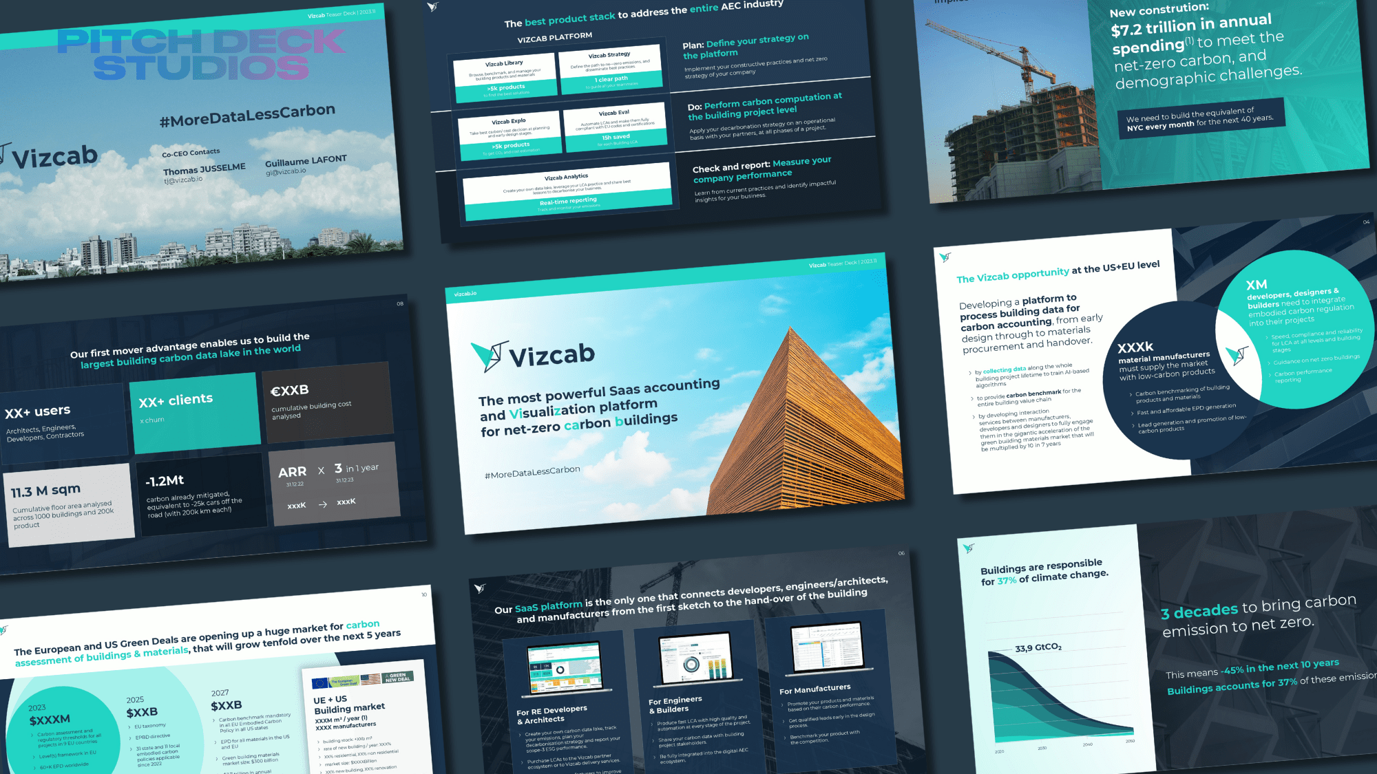 Designed for impact startups and social enterprises, this template shows how to present purpose-driven businesses that generate both social returns and financial success, based on Vizcab’s €9 million Series A achievement.